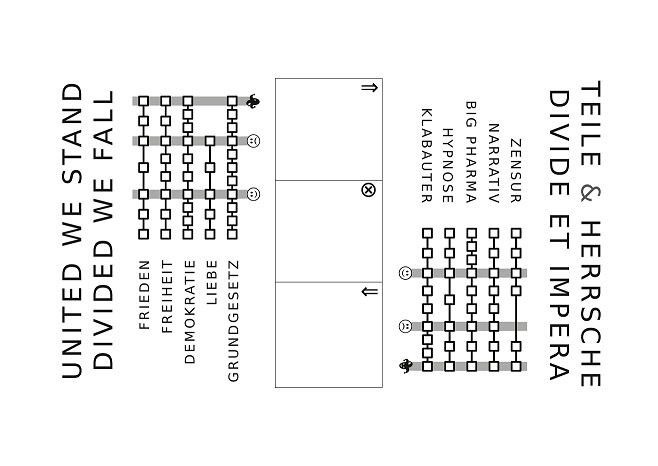 Der Widerstand spielt mit dem Satz „United we stand – divided we fall“.
